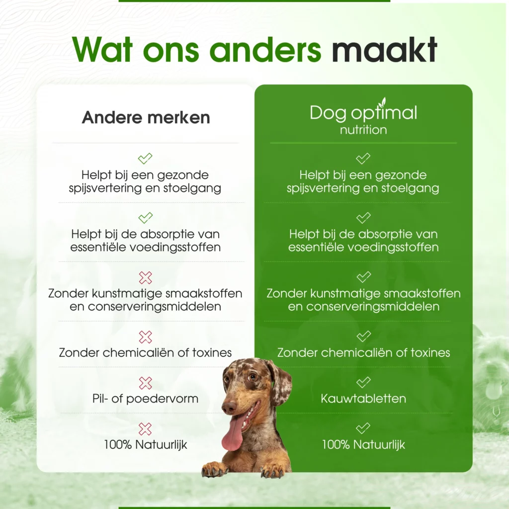 "Dit werkt echt. Onze hond Bella is er gek op. Elke ochtend wacht ze op de eerste brok van de dag. Ze houdt ervan. De ontlasting ziet er veel beter uit."