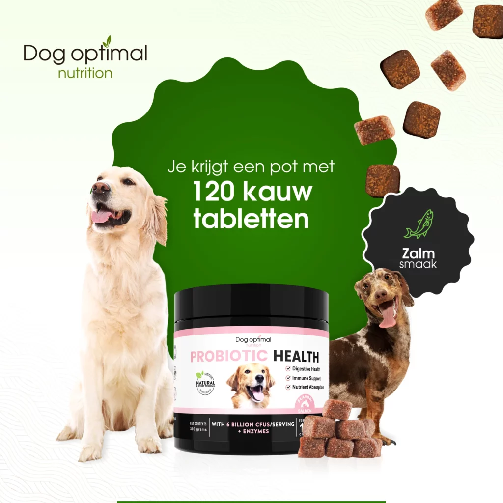Probiotica zijn nuttige bacteriën die de gezondheid van de darmen kunnen bevorderen. Ze worden steeds vaker gebruikt om de spijsvertering en darmgezondheid van honden te ondersteunen, vooral bij diarree. Dog Optimal’s Probiotic Health is een product dat speciaal is ontwikkeld om de darmflora van je hond te ondersteunen.