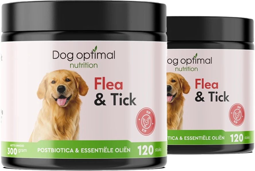 Een goede algemene gezondheid kan een positieve invloed hebben op het stressniveau van je hond. Onze supplementen ondersteunen hier. Zo helpt onze Vlooi en Teek bij het voorkomen van parasieten, en ondersteunt Dental Water de mondhygiëne van je hond.
