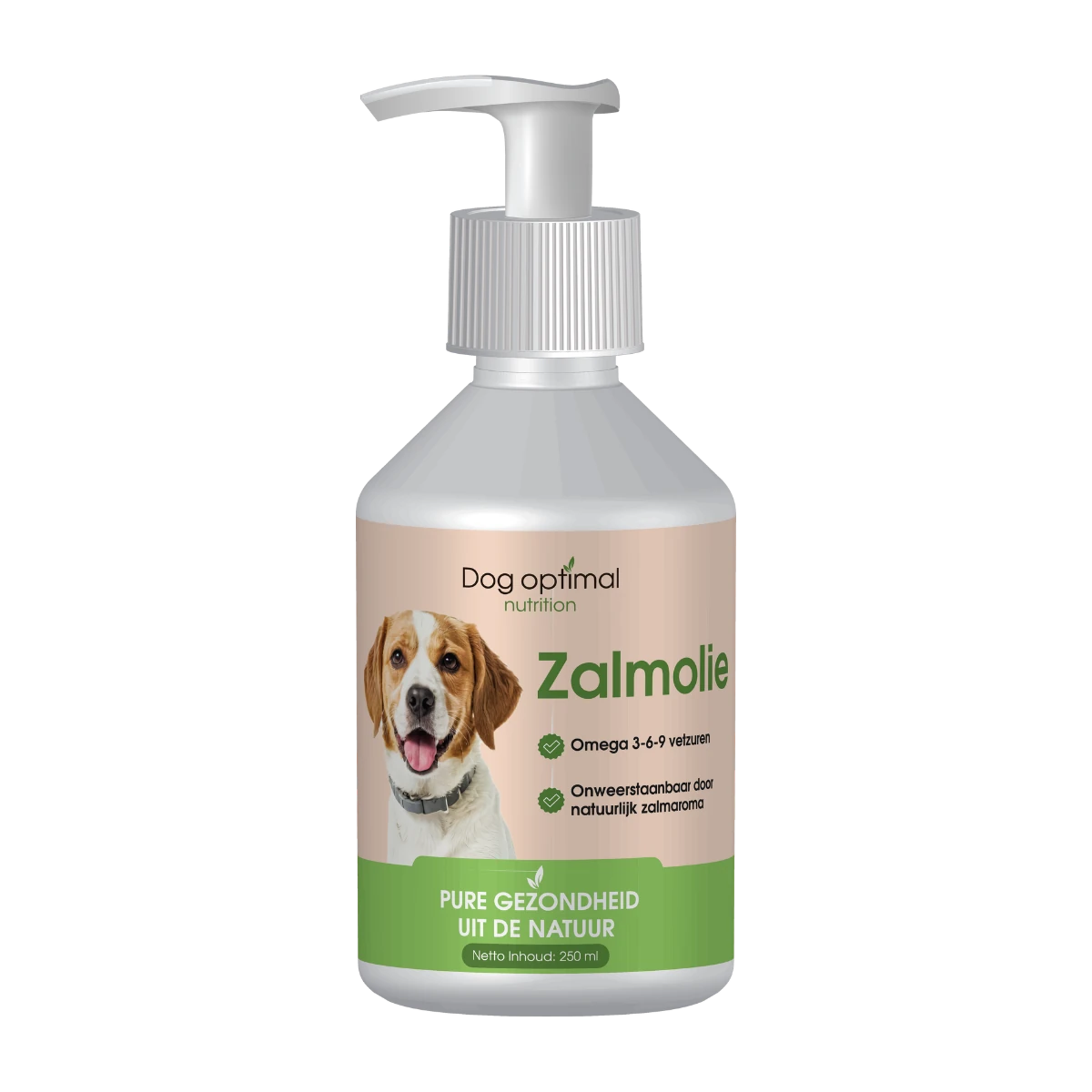 Dog Optimal Zalmolie is een hoogwaardige, natuurlijke olie speciaal ontwikkeld voor honden. Deze zalmolie is rijk aan omega-3- en omega-6-vetzuren, essentiële voedingsstoffen die bijdragen aan een gezonde huid, een glanzende vacht en een optimale vitaliteit van jouw hond.